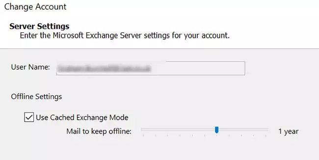 Step 4: Pick your new storage duration using the "Mail to keep offline" slider and confirm. Note that if "Used Cached Exchange Mode" isn't ticked on your device, this means that no email is stored on your machine and it's all retreived directly from the internet in all cases.